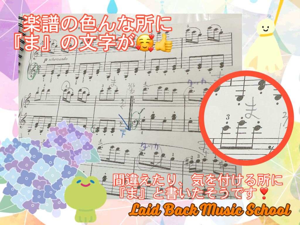 この間、楽譜の色んな場所に『ま』の文字が書いてありました。