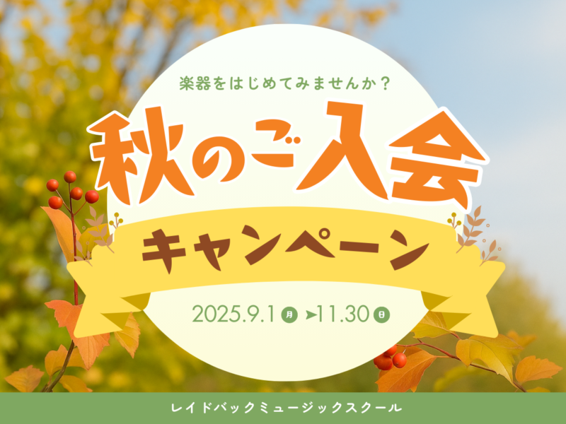 レイドバックミュージックスクールでは、2025年9月1日(月)〜11月30日(日)まで